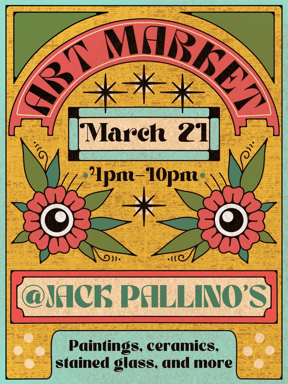Join us March 21st for our collaborative local art market featuring hand made art and even some tasty treats!
