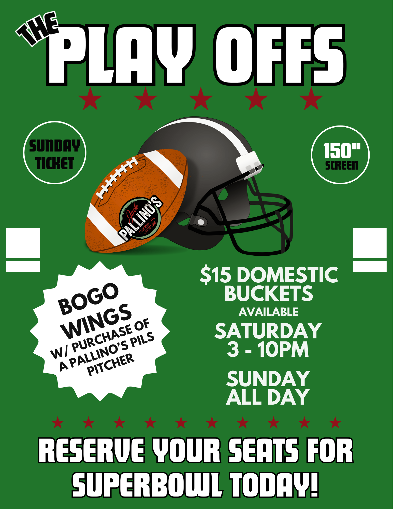 At Jack Pallino’s, our mission is to ignite community spirit by bringing together sports fans and pizza lovers in a fun and welcoming atmosphere. We serve up handcrafted brick‑oven pizzas, made with the freshest ingredients, alongside great drink offerings and live game action on multiple screens. Whether you're here for Happy Hour, a private event, or just catching the game, our goal is to deliver exceptional food, genuine hospitality, and memorable moments